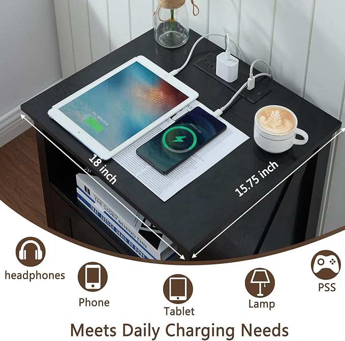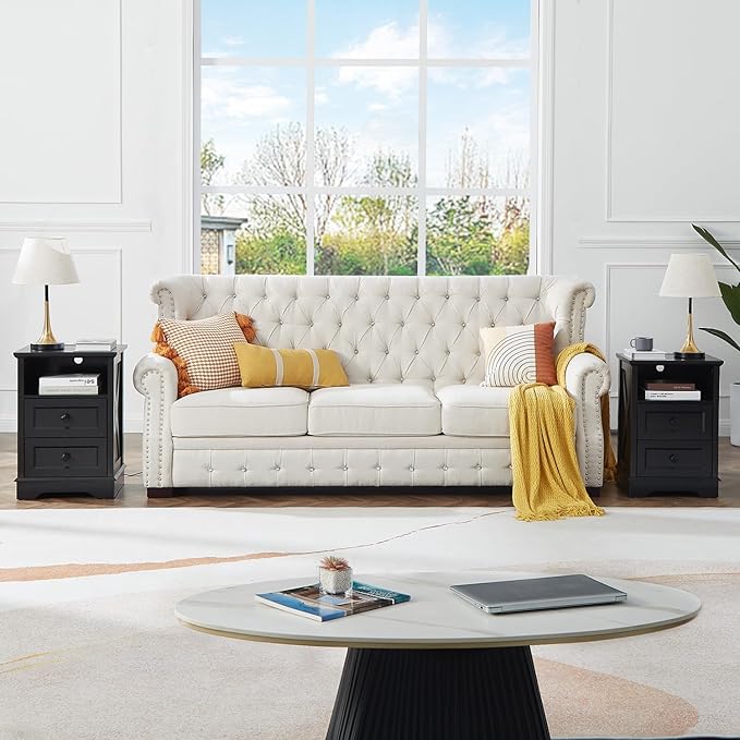- Large Storage Space: Measuring 15.75"D x 18"W x 25.6"H, this nightstand comes with 2 large drawers and open storage shelves to keep your essentials and personal items organized and easily accessible. The wide tabletop at the top can display your decorations, photo frames, cell phones, tablets, etc. to make your room more tidy. This 2 drawer chest is not only suitable for home use, but also ideal for space storage solutions such as apartments or dorms