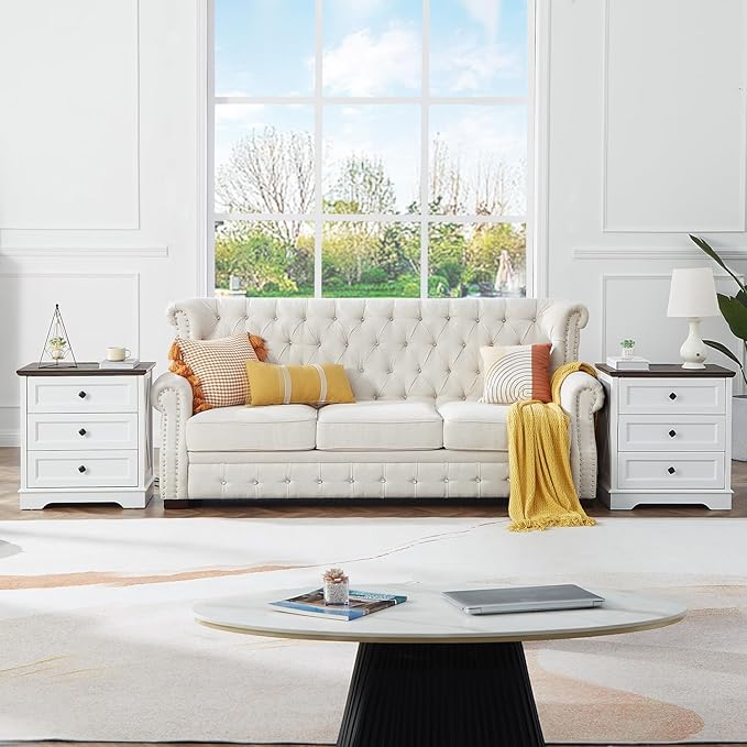 - Large Storage Space: Measuring 15.75"D x 23.6"W x 25.6"H, this nightstand comes with 3 large drawers that provide plenty of space for organizing your belongings. You can also purchase two 3 drawers cabinets to form a 6-drawer farmhouse dresser for storing organized clothes, blankets, scarves, socks and other accessories. This 3 drawer chest is not only suitable for home use, but is also ideal for storage solutions in spaces such as apartments or dorm rooms