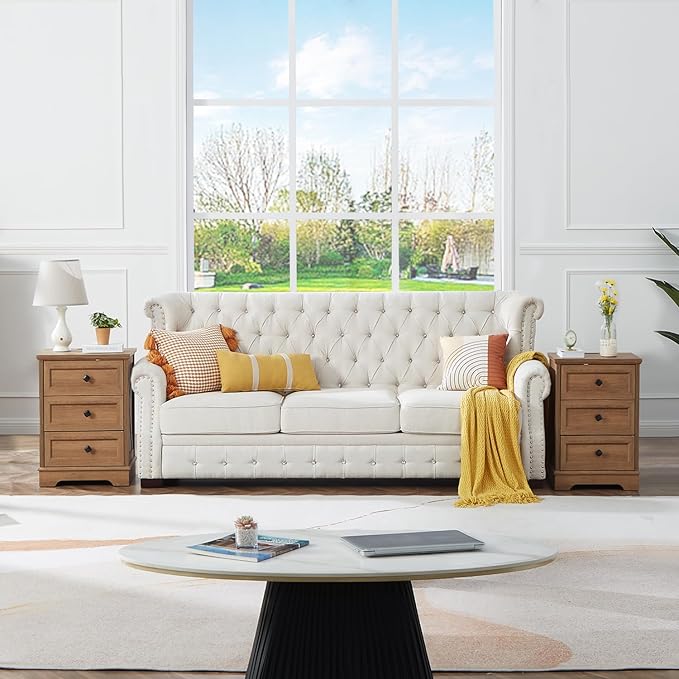 - Large Storage Space: Measuring 15.75"D x 17.7"W x 25.6"H, this nightstand comes with 3 large drawers that provide plenty of space for organizing your belongings. You can also purchase two 3 drawers cabinets to form a 6-drawer farmhouse dresser for storing organized clothes, blankets, scarves, socks and other accessories. This 3 drawer chest is not only suitable for home use, but is also ideal for storage solutions in spaces such as apartments or dorm rooms