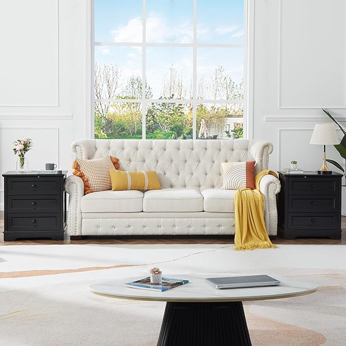 - Large Storage Space: Measuring 15.75"D x 23.6"W x 25.6"H, this nightstand comes with 3 large drawers that provide plenty of space for organizing your belongings. You can also purchase two 3 drawers cabinets to form a 6-drawer farmhouse dresser for storing organized clothes, blankets, scarves, socks and other accessories. This 3 drawer chest is not only suitable for home use, but is also ideal for storage solutions in spaces such as apartments or dorm rooms