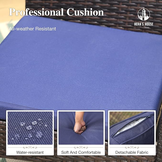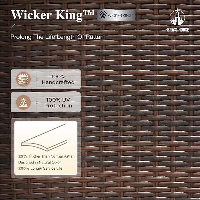- 【Ergonomic Design】HERA'S HOUSE patio dining set features an ergonomic design that provides maximum comfort and relaxation. The natural textured rattan material has securely wrapped edges, making it more durable and sturdy than regular wicker chairs