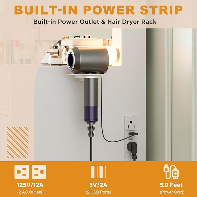 - 【Makeup Vanity with Charging Station】This vanity table comes with a charging station and hair dryer holder, including 2 standard plug sockets and 2 USB ports to connect your hair dryer, curling iron, computer, cell phone, ipad and other devices, so that all activities can be carried out on this makeup table