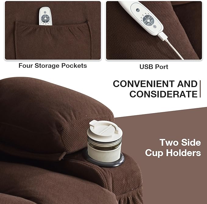 - ใ๐จ๐ฆ๐ ๐๐ต๐ฎ๐ฟ๐ด๐ถ๐ป๐ด & ๐ฆ๐ถ๐ฑ๐ฒ ๐ฃ๐ผ๐ฐ๐ธ๐ฒ๐๐ใ:Keep your essentials close in the dual side pockets, perfect for remotes, reading glasses, or magazines. A built-in USB charging port keeps your phone or tablet powered while you relax in your lift chair for elderly users, making it ideal for modern living rooms and home theaters.