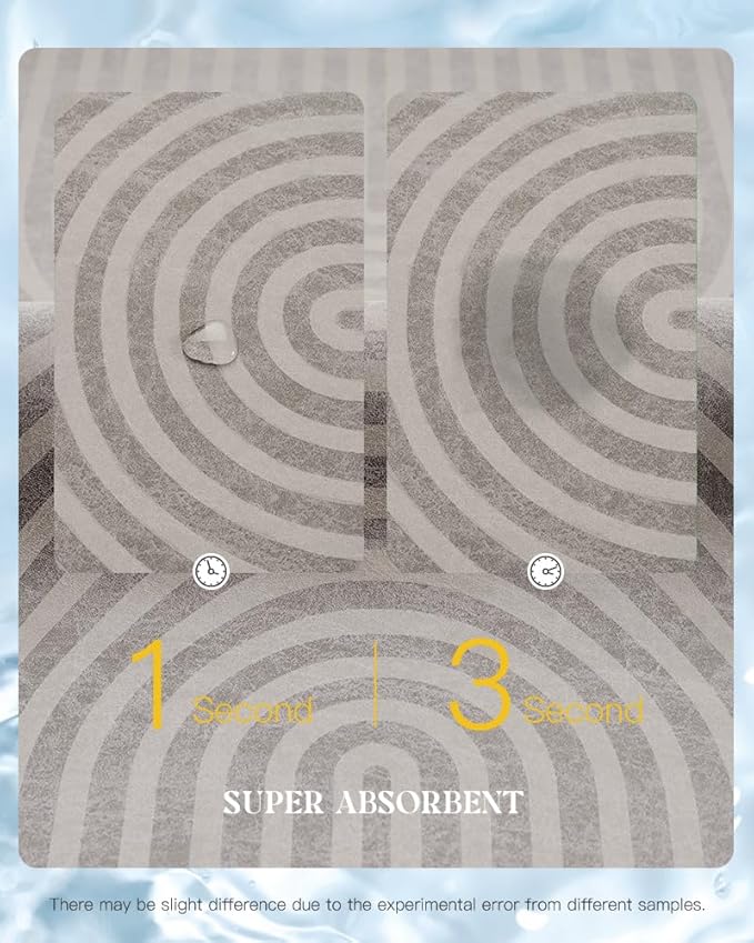 - ABSORBENT :This is a soft version of the diatomaceous earth bath mat. The bathroom rug can suck up dripping water when you come out from bathtub or shower.Faux suede surface dry quickly.Always keep your bathroom clean and tidy