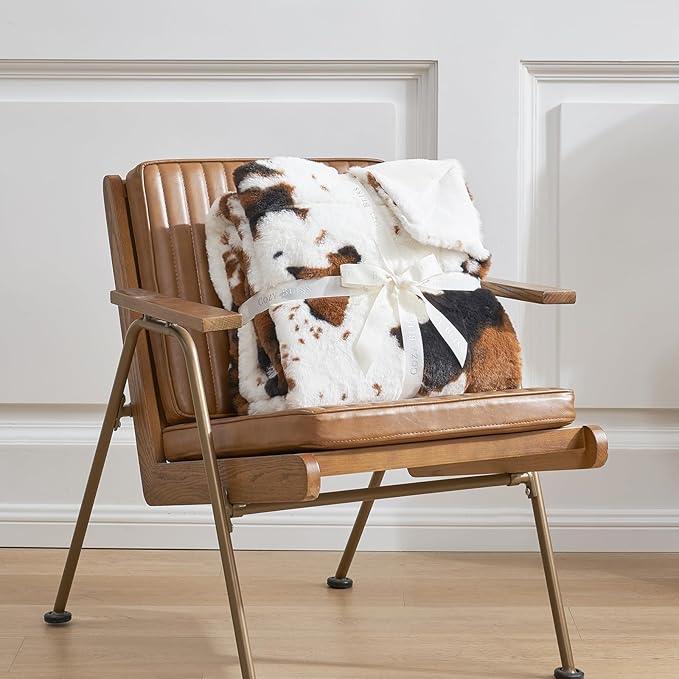 - VERSATILE: Add elegance to your home décor with our exquisite cow print pattern Throw Blanket and brighten up your room with a well-crafted design. Beautifully crafted, this versatile faux-fur blanket will add sophistication to any space, whether it's a living room, bedroom, or as a decorative blanket.
