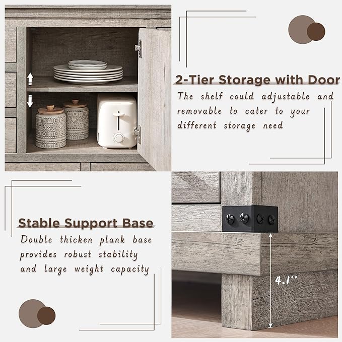 - Built for Durability: Our dresser is made from FSC-Certified wood and crafted from high-density engineered wood, the farmhouse 8 drawer chest offers lasting durability and exceptional stability. The 1.77" thick tabletop supports up to 100 lbs, while the 4.13" sturdy base ensures strong stability. Wall anchors prevent tipping, and optional anti-tip metal plates provide added security (installable based on your preference)