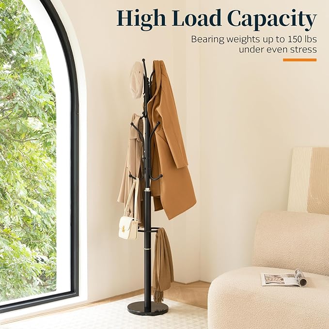 - 【Long-lasting Strength】Built to last, our coat stands for entryway apply a thick steel rod and advanced welding for a sturdy, stable structure that resists bending. The coat racks free standing stay stable even when fully loaded with heavy coats and umbrellas. Also, its rust-resistant finish ensures the coat rack's long-term durability—no paint drop.