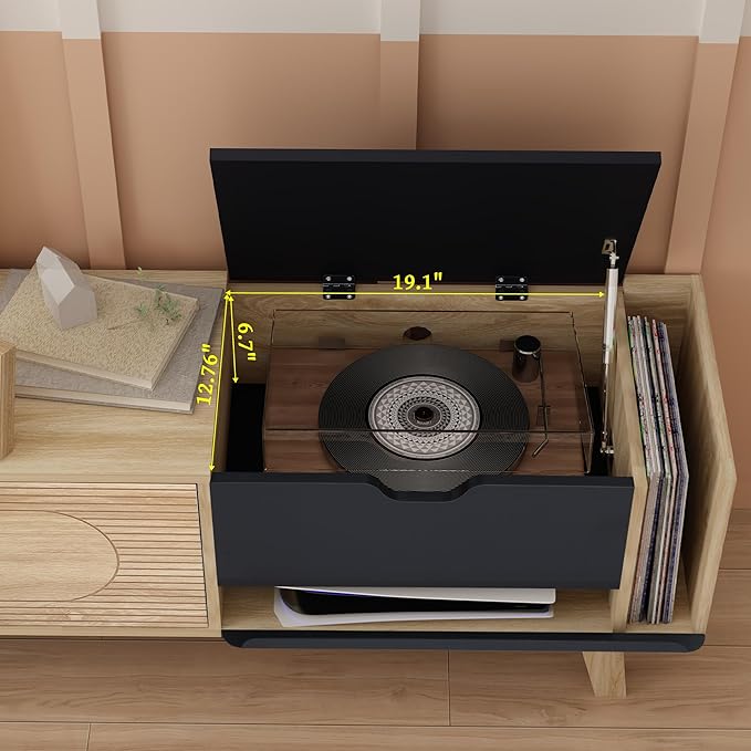 - 【Multifunctional Design】 This innovative TV stand serves as both a TV console and a CD cabinet, featuring a flip cabinet door that opens upwards for easy access to your media collection without moving your CD player