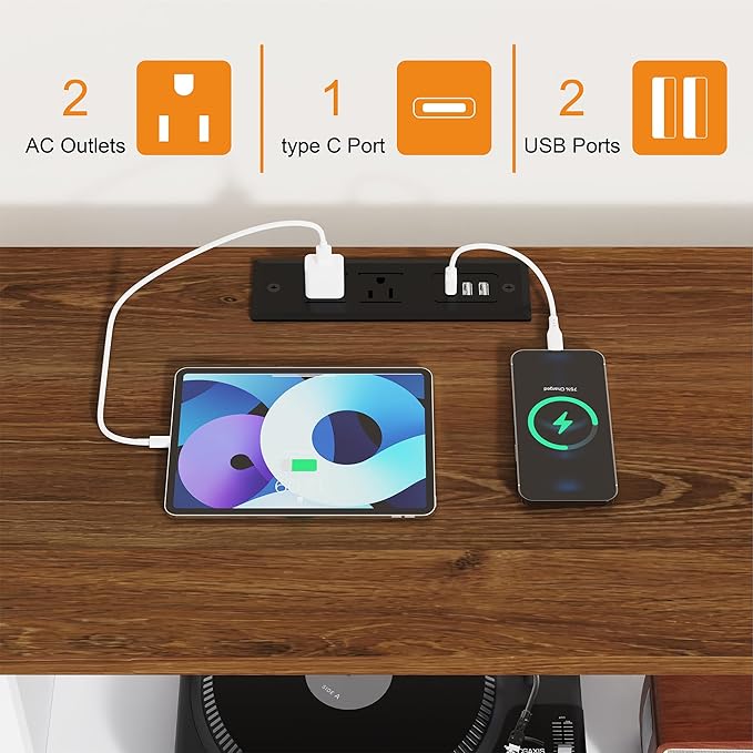 - Built-in Charging Port: The dresser equipped with upgraded charging station, including 1 Type C port, 2 USB ports, and 2 standard outlets. With an extension cord, you can easily power your TV, sound system, WiFi, and more devices