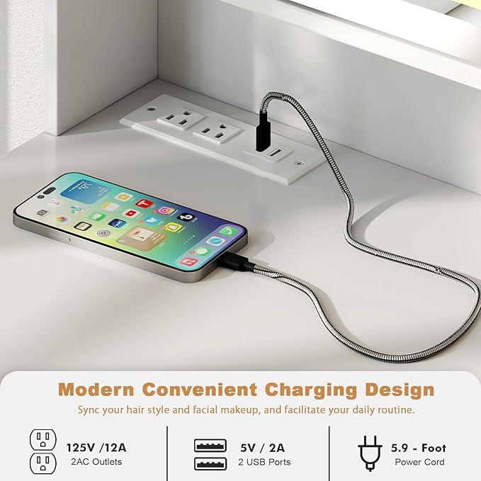 - LUXURIOUS GIFT FOR HER: Adjustable LED Vanity with Hidden Storage & Charging Ports. Perfect for Mother’s Day, birthdays—elevate her daily routine with professional-grade lighting and sleek modern design.