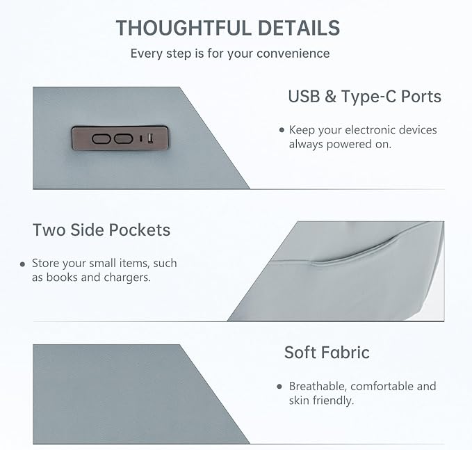 - What’s You Get More: The USB and Type-C charging ports can keep your electronic devices constantly connected. There is one pocket on the right side of the closeout recliners chairs adults for you to store your book and charges.