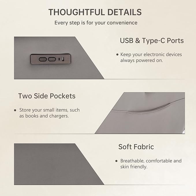- What’s You Get More: The USB and Type-C charging ports can keep your electronic devices constantly connected. There is one pocket on the right side of the closeout recliners chairs adults for you to store your book and charges.
