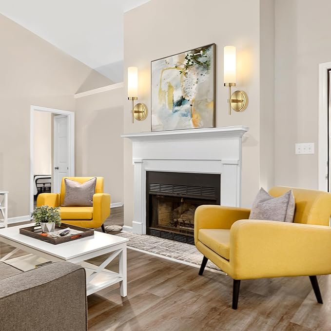 - 【Modern Bathroom Light】The brushed gold finish sconces wall decor is made of high-quality steel and aluminum and equipped with milk glass shade, it combines modern and industrial styles and is very suitable for mirror lighting in modern bathrooms.