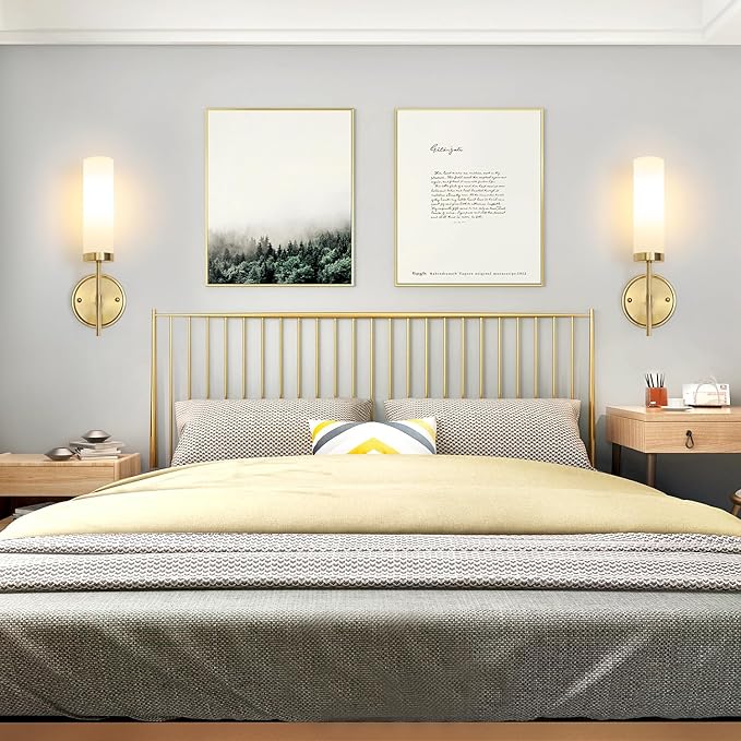 Gold Wall Sconces, Modern Bathroom Vanity Light Fixtures, Sconces Wall Decor Set of 2, Wall Lamps with Frosted Glass, Indoor Wall Lights for Bedroom Living Room Hallway