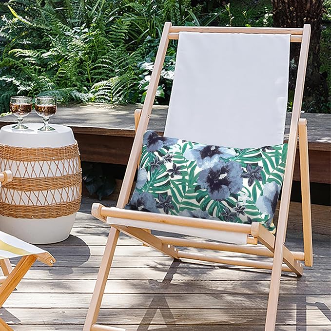 Outdoor Lumbar Pillows 12x20 inch, Rectangle Throw Pillows with Inserts, Decorative Lumbar Cushions for Patio Furniture Garden Couch Home Sofa Office Chair, Pack of 2,Blue Salmone Tropical