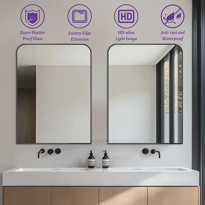 - Stylish Design: the wall mirror is very modern, making your bathroom more elegant and noble, extra eye-catching. Ideal for decorative vanity mirrors, making the space more spacious and bright