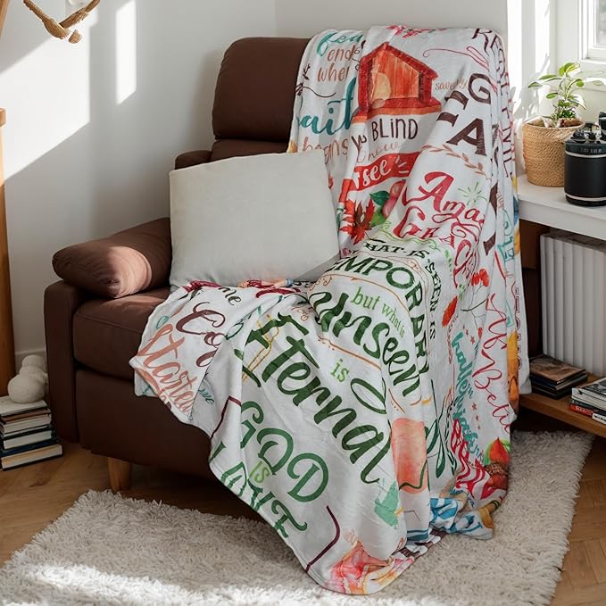 - Christian Gifts for Women: Inspired by classic Bible verses, this blanket beautifully combines faith and elegance, making it a meaningful religious gift. Whether as home decor or a thoughtful present, it offers comfort and reflects the strength of faith. Perfect for catholic women or bible gifts, its daily bible verse design makes it a warm reminder of faith in everyday life.