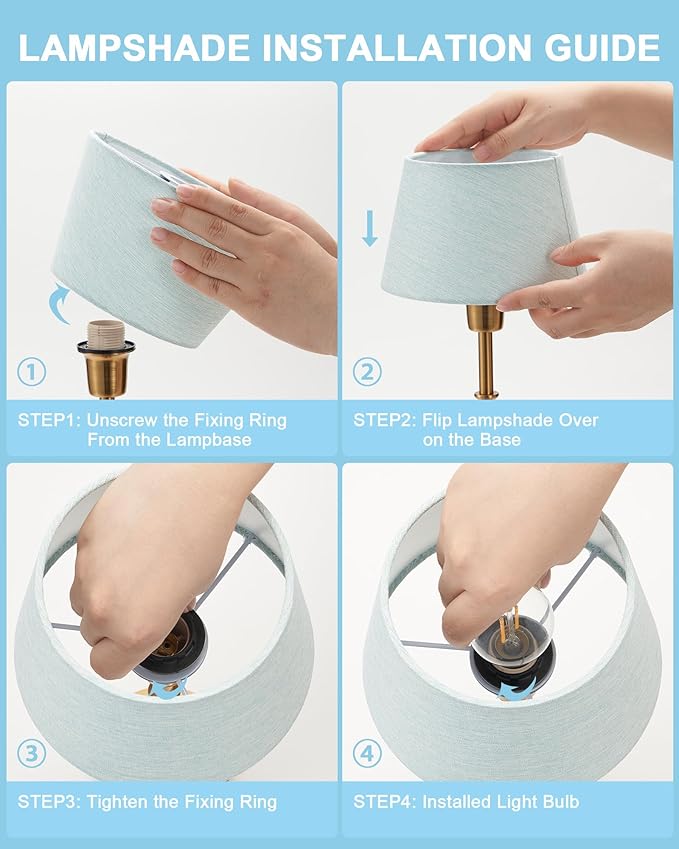 - Design and Aesthetics: This dimmable bedside lamp's classic and stylish design, including the real fabric shade, antique brass finish and the metal base, aesthetically pleasing and suitable for different home table decor styles, enhancing the ambiance. Measuring 13.97 inches tall, 3.93 inches Base Diameter, 6.10 inches Top Shade Diameter