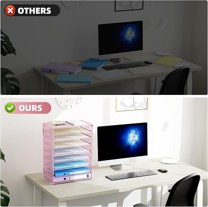 - 【PREMIUM QUALITY】The mesh desktop file organizer is made of lightweight durable metal mesh and reinforced with a solid steel frame that makes it have long-lasting strength and reliable performance.