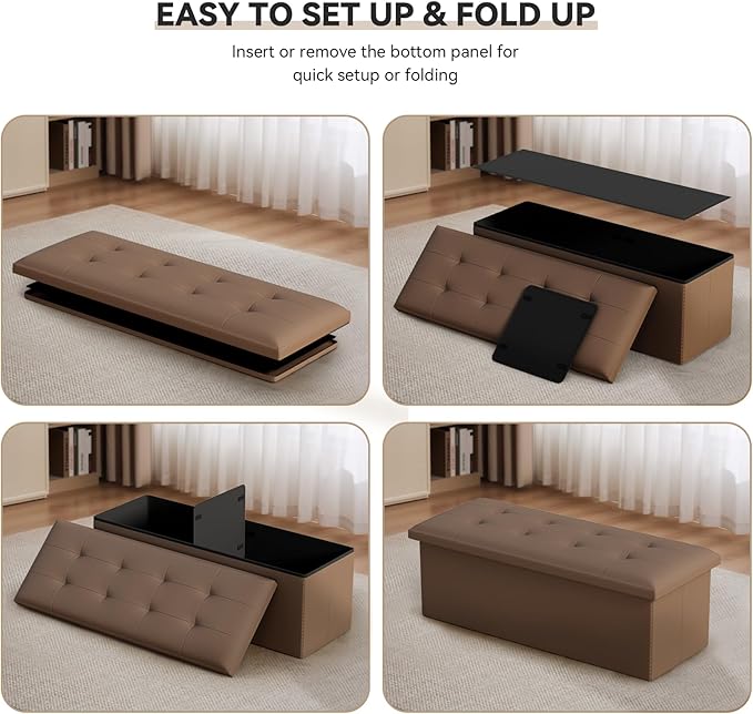 - ๐๐ฆ๐ฉ๐ฅ๐ ๐๐ญ๐จ๐ซ๐๐ ๐ ๐๐ฉ๐๐๐ - This folding ottoman footrest measures 15โD x 43โW x 15โH (38 x 110 x 38 cm) and offers a generous 35-gallon capacityโperfect for neatly storing bed sheets, pillows, blankets, magazines, and more.