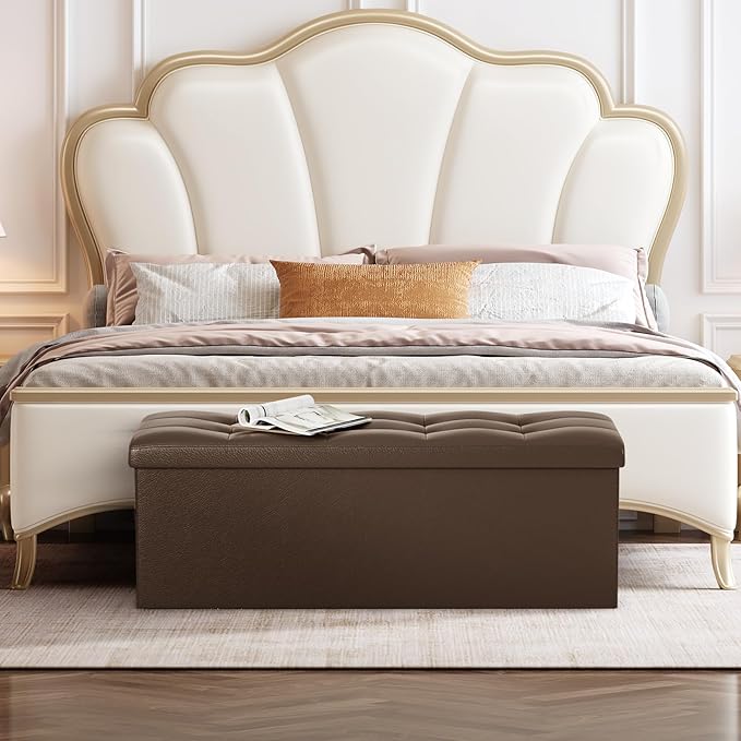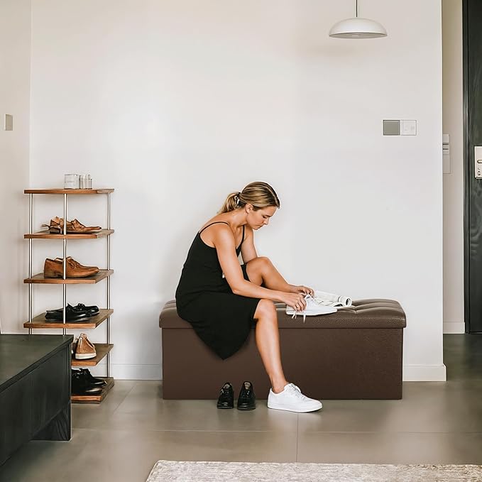 Storage Ottoman Bench, 43 Inch Ottoman Foot Rest, End of Bed Bench, Storage Chest, Load 700 lb, for Living Room, Bedroom, Entryway, Brown