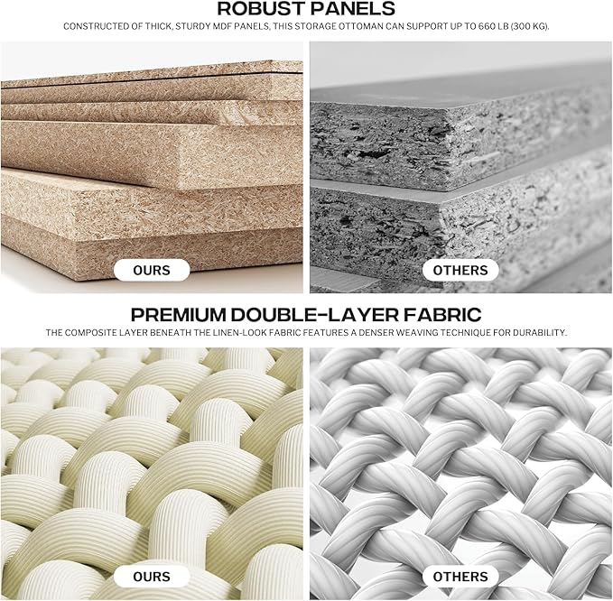 - ๐๐ญ๐ฎ๐ซ๐๐ฒ & ๐๐ญ๐๐๐ฅ๐ - This rectangular ottoman is constructed from durable microfibre, with legs made from solid wood. It is capable of supporting up to 700 lbs and features highly resilient memory foam padding for a comfortable sitting experience.