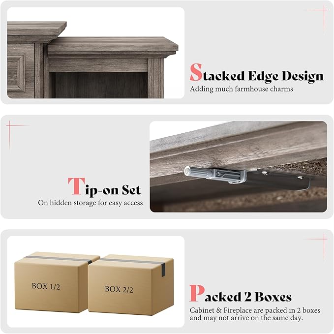 - 【Warm Tips】TV console & fireplace are packed in 2 boxes. Two people can finish assemble with 90 mins. Any questions are welcome, we are online 24 hours