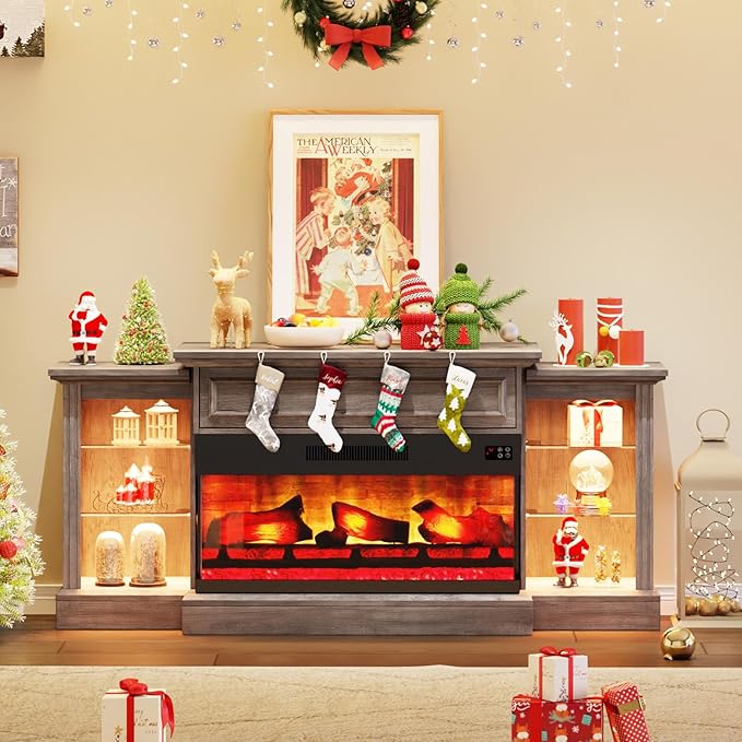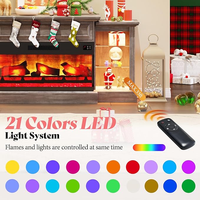 - 【36"Enlarged Fireplace】Built-in 36 inch electric heater provides quiet, safe and energy-efficient heat, adjust temperature from 64°F to 86°F. Equipped with 1-8 hours timer and overheat protection makes more safety