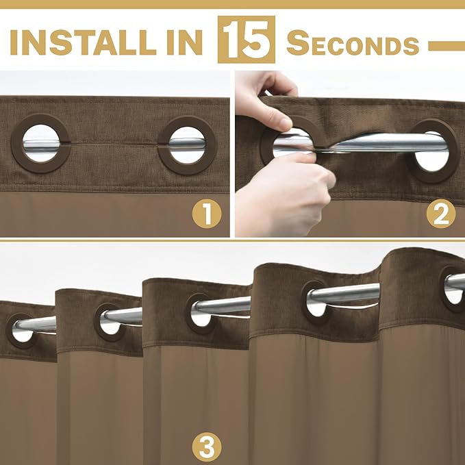 No Hook Shower Curtain with Snap in Liner, Polyester Textured Shower Curtain with Liner Set, Waterproof Washable Hotel Style Shower Curtains for Bathroom, 71Wx74H, Brown