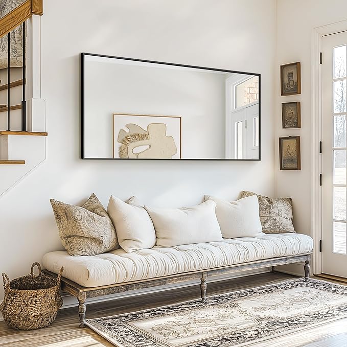 - SECURE & EASY HANING: Equipped with 4 hooks, this mirror can be hung horizontally or vertically, adapting different rooms and décor styles, such as bathroom, vanity, farmhouse, bedroom, fireplace and so on