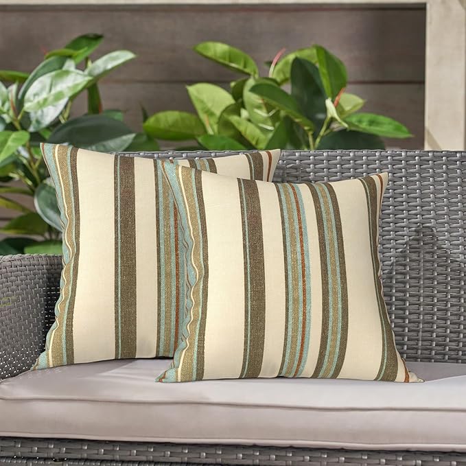 LVTXIII Outdoor Pillow Covers ONLY, Square Throw Pillow Covers, Modern Cushion Cases for Sofa Patio Couch Decoration 18 x 18 Inch, Pack of 2, Stripe Onyx