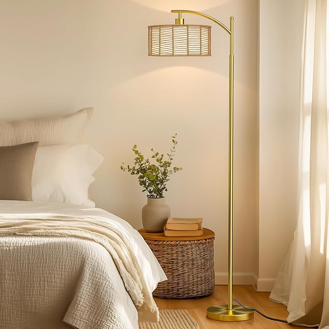 - Be Your Own Designer: This arc floor lamp comes with a boho rattan and linen drum lampshade, has 3 display effects. The removable lampshade can be freely combined according to your preference. Whether you prefer a minimalist or bohemian style, our floor lamps for living room allow you to create a customized look of your own
