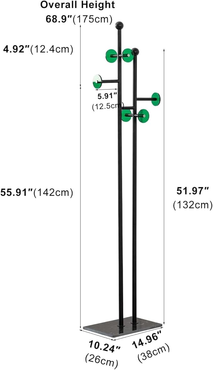 - Modern Elegance Design: This coat stand Combination of multiple materials, features sleek black rods and stylish green acrylic hooks;The combination of these colors creates a modern, elegant look that fits effortlessly into any room, adding a touch of luxury to your space