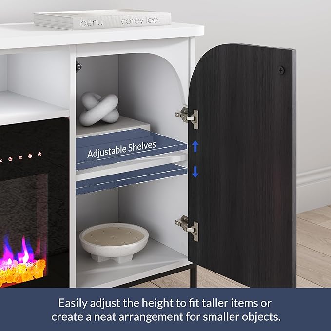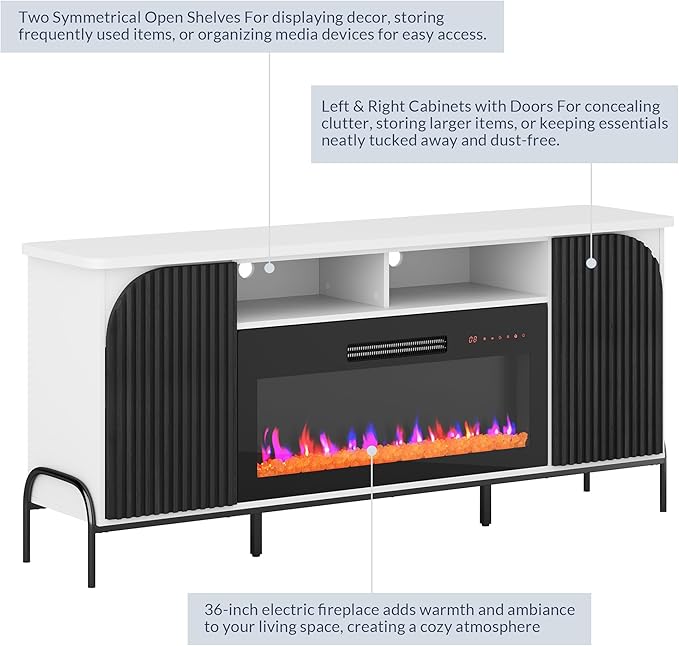 - Elegant Fluted Design: BELLEZE fluted fireplace TV stand features beautifully crafted fluted cabinet doors, adding a touch of sophistication and charm. Its unique texture makes it a striking focal point in any living room, enhancing your decor while appealing to modern design sensibilities.