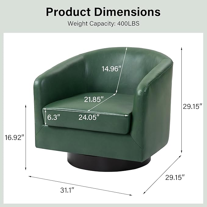 Swivel Barrel Chair, Modern Round PU Leather Accent Armchair for Living Room, Bedroom, Oversized Comfy Club Reading Chairs for Adults (Leather Green, Set of 2)