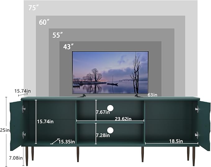 - 【Sturdy and Safe】: Made from P2 class MDF boards and eco-friendly paint, the TV stand for living room has a smooth, waterproof surface for easy cleaning. Six heavy-duty metal legs, ensure excellent stability and weight capacity.