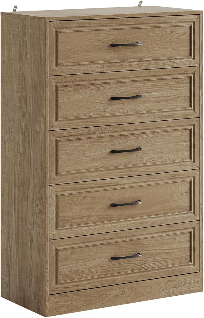 Fameill Dresser for Bedroom, 5 Drawer Tall Dresser Organizer, TV Stand for Livingroom, Chest of Drawers with Metal Handles, Oak