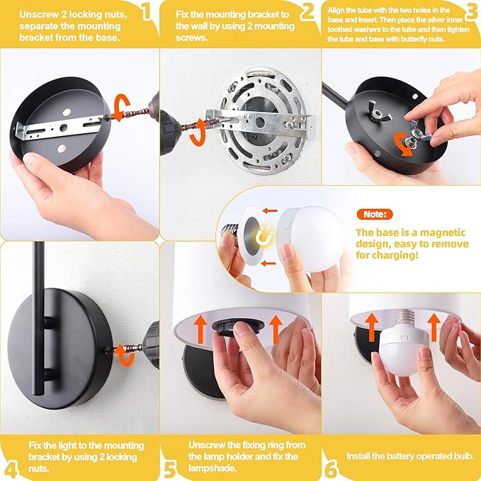 - No Wiring Required & Easy to Install--No wiring and not hardwired requirement, these battery-operated wall lights come with everything you need to install. The rechargeable wireless sconces are especially useful during power outages or emergencies, providing reliable illumination when you need it most.