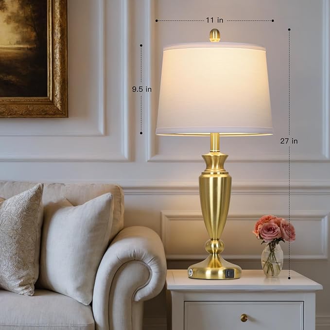 27'' Gold Table Lamps for Living Room, 3 Way Touch Control Bedside Lamps Set of 2 with USB A+C Ports, Modern Metal Nightstand Lamps for Bedroom Living Room Office End Table