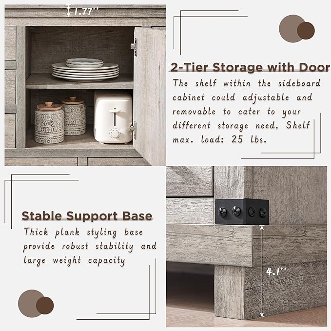 - Buy with Confidence: Your farmhouse dresser is securely packaged with foam and wooden boards to protect against shipping damage. If you encounter any issues, our dedicated support team is here to assist you. Your satisfaction is our top priority—buy with confidence and transform your space today!