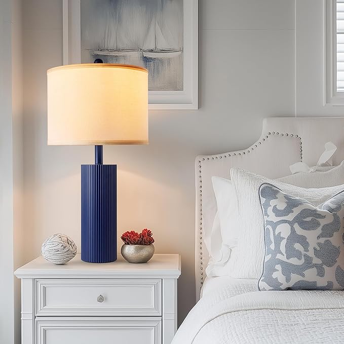 - 2 USB Charging Ports: Each lamps for bedroom nightstand has USB A+C ports bulit in for charging phones and other electronic devices. Whether the blue table lamp is on or off, these ports can still keep working.