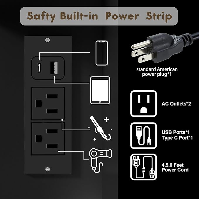 - Power Outlet: The vanity bench is equipped with two sockets and two USB ports. It provides great convenience for charging your phone or other electronic device.