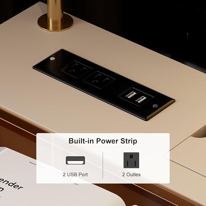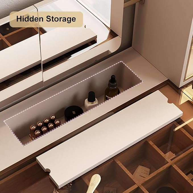homary Modern Makeup Vanity Set with Charging Station, Makeup Table with 5 Drawers, Jewelry Storage, Vanity Desk with Foldable Mirror, Dressing Table with Stool for Bedroom (Champagne)