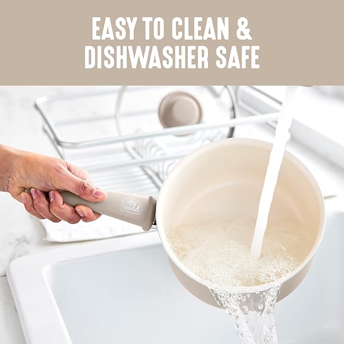 GreenLife 2 Quart Ceramic Nonstick Saucepan with Lid, PFAS-Free, Stay-Cool Handle, Multipurpose Kitchen Cooking Pot, Dishwasher & Oven Safe, Taupe