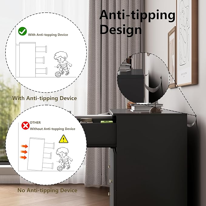 - 【PERFORMANCE UPGRATE】Sturdy wood dresser legs structure ensures stability and support for daily use, that always keep it stable on uneven floors. And the anti-tipping device can protect your family from tipping related injuries. Besides, bedroom dresser is equipped with sliding rail smooth-gliding and independent, you can push in and pull out drawers easily and quietly.