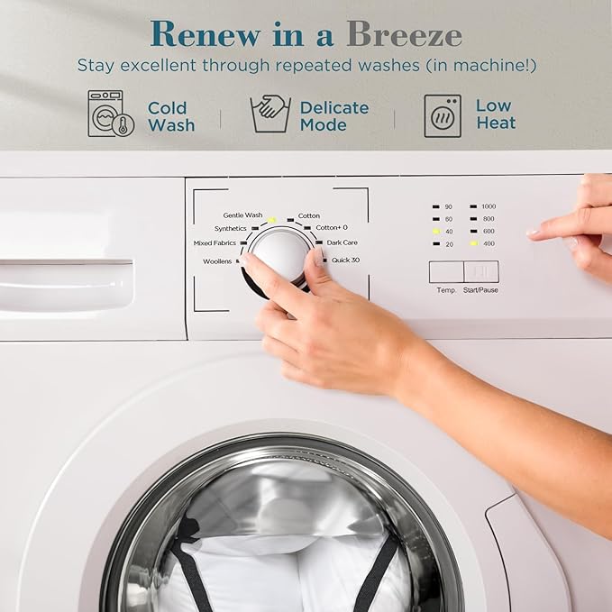 - Hassle-free Use: Made of machine-washable and dryer-friendly materials, this pillow set is easy to maintain and will bloom like new even with repeated cleaning. Standard pillows set of 2 come vacuum-sealed and expand quickly to full size within 24 hours