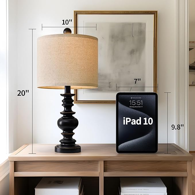 BOBOMOMO 20" Table Lamp Set of 2 for Bedroom Living Room Vintage Rustic Traditional Nightstand Bedside Lamps(Suitable for Decorating Small Areas)