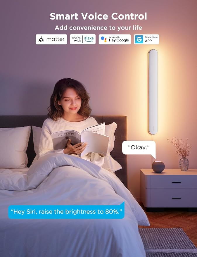- Smart Control: This wall light is compatible with Matter, Alexa, and Google Assistant. Enjoy voice and app control via Govee Home App for hands-free operation. With a stable 2.4Ghz WiFi, you can manage your wall sconce from anywhere.