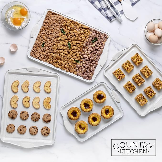 Country Kitchen Nonstick Stackable Bakeware Set - Heavy Duty, Durable, Easy Release Baking Set, Cream, 4 Pcs