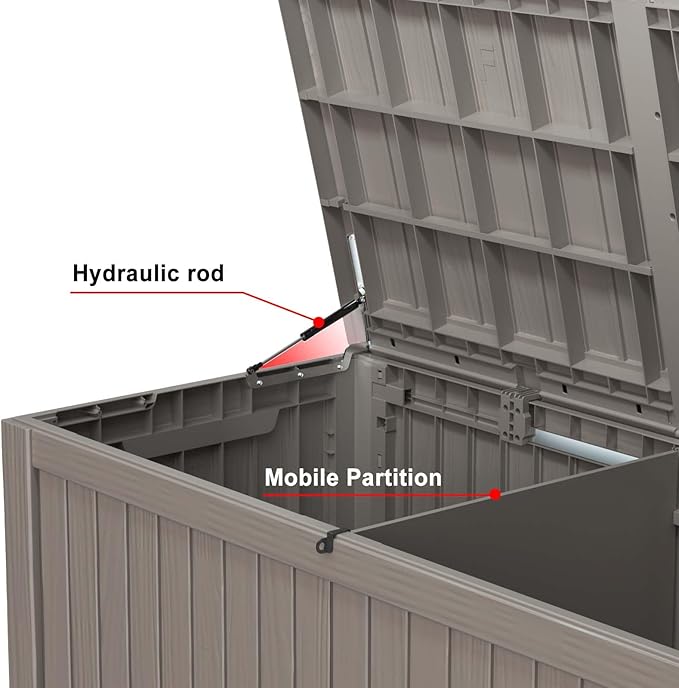 - DURABLE IN ANY CONDITION: This outdoor deck box features an all-weather design with an aggregate resin and wood grain pattern that offers a blend of beauty and utility. It ensures protection against water, UV rays, fading, rust, peeling, and warping, requiring minimal maintenance for the years ahead